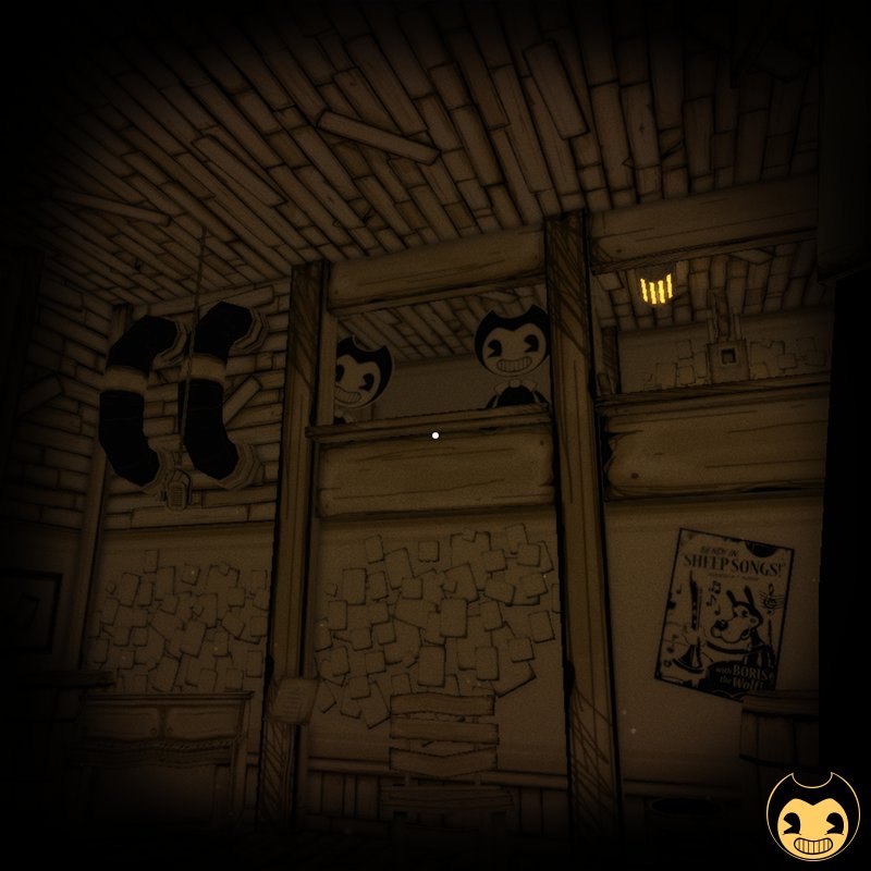 - При использовании читов можно увидеть, что внутри находится восемь макетов Бенди а также слева находится заколоченный проход к лестнице, которая ни к чему не ведёт.
