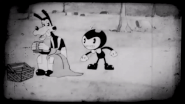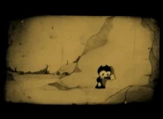 Бенди прячется за надгробным камнем, но не замечает, что рядом с ним прячется и скелет. А когда обнаруживает это, убегает. Бенди подбегает к скале и понимает, что это тупик. К стене подходит неизвестная тень, на что Бенди улыбнулся. После плёнка прерывается.