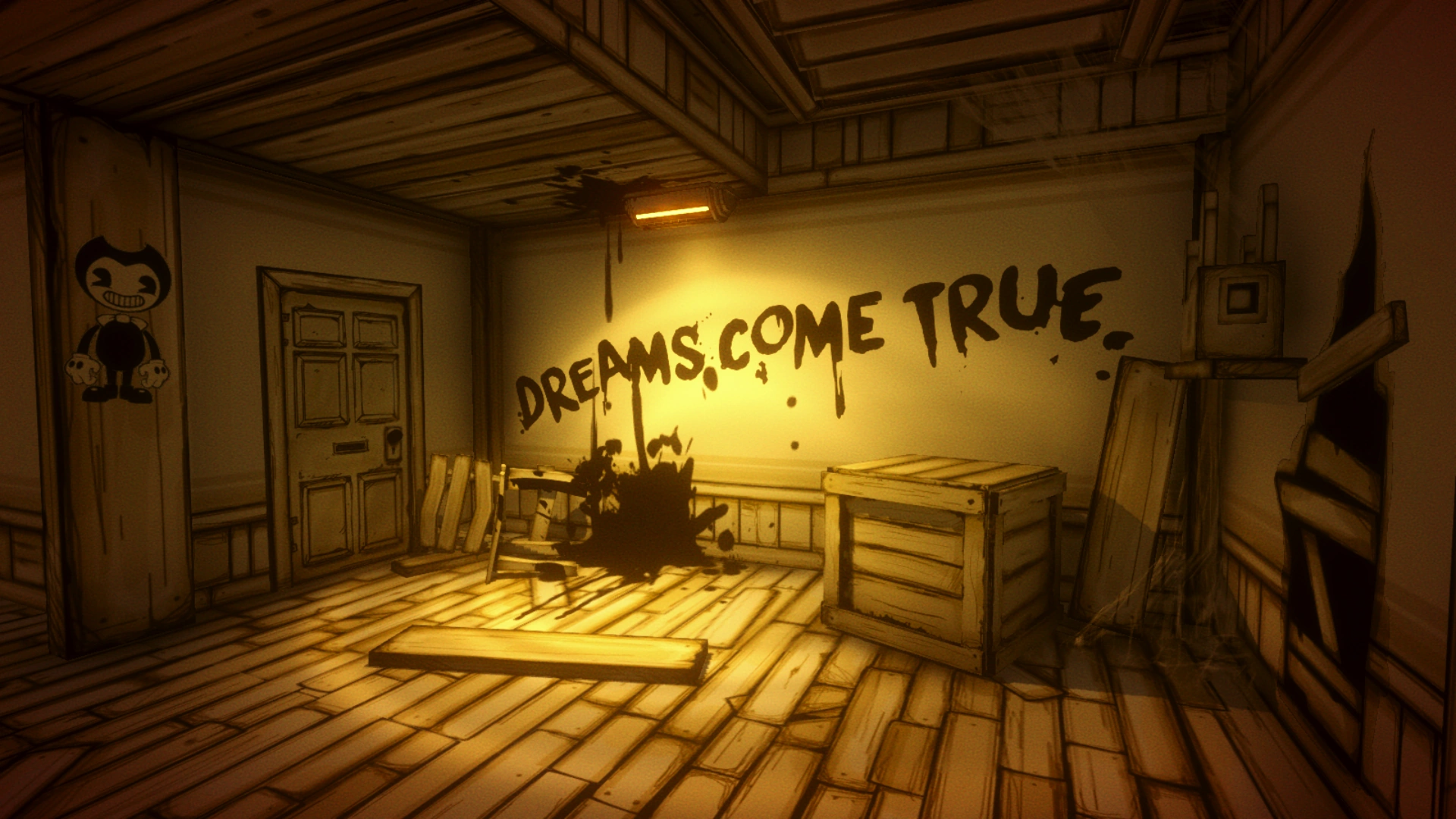Комната содержит в себе лежащий на боку стул, чернильное пятно, ящик, две доски, паутину и проектор на полке. На стене написано «DREAMS COME TRUE» (рус. МЕЧТЫ СТАНОВЯТСЯ РЕАЛЬНОСТЬЮ)
