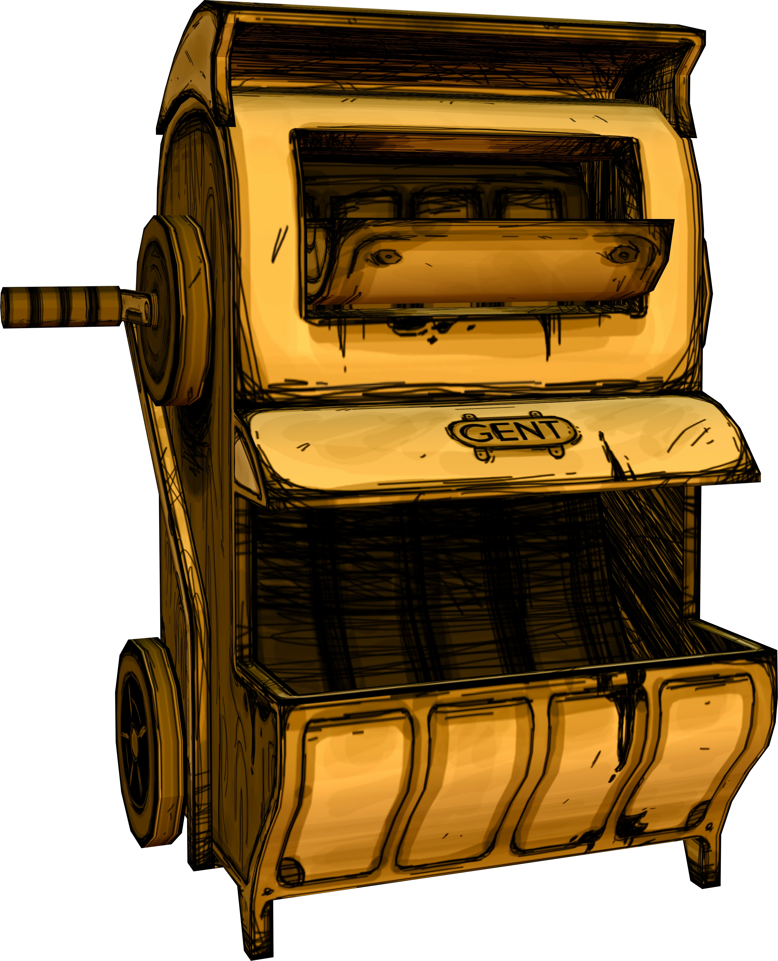 Этот аппарат похож на игровой автомат со слотом спереди, по бокам располагаются рычаг и колесо с символами. Преобразователь был создан компанией «Gent».