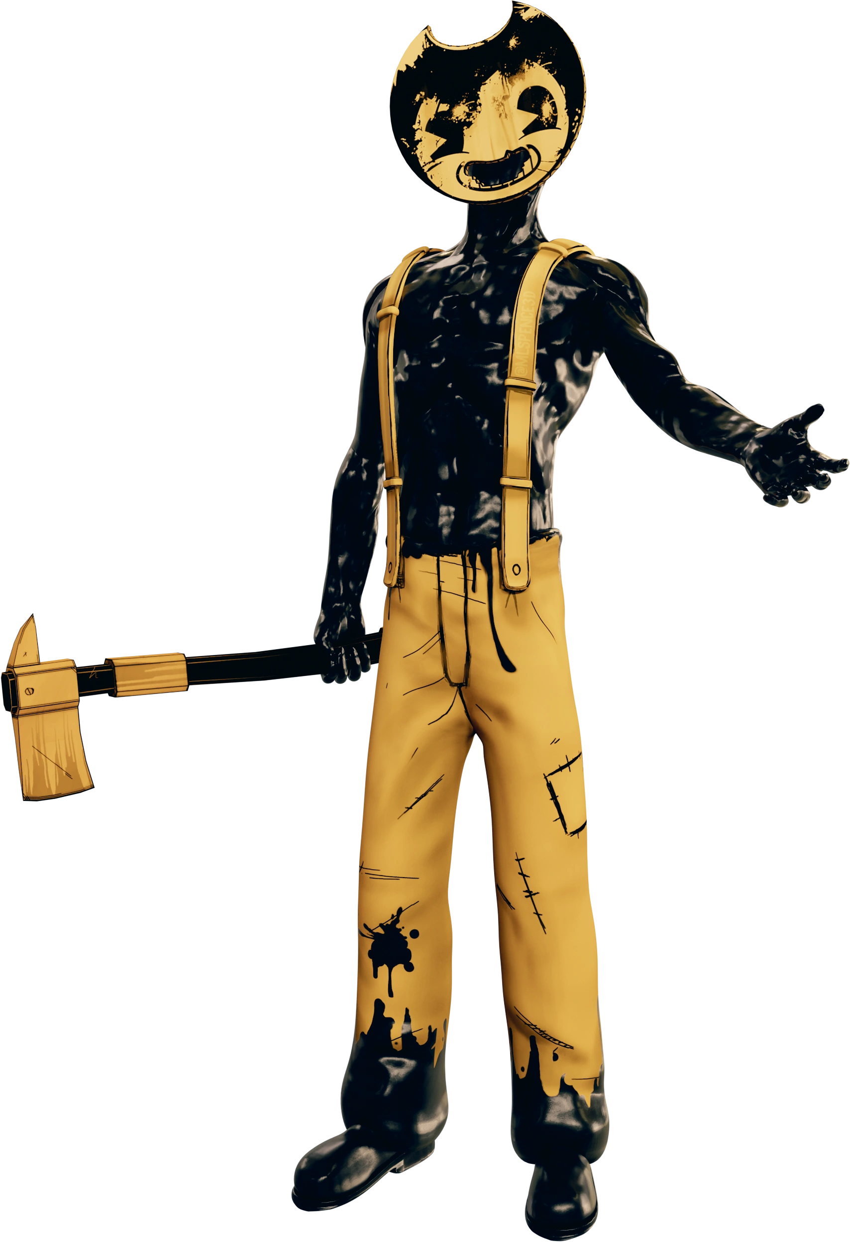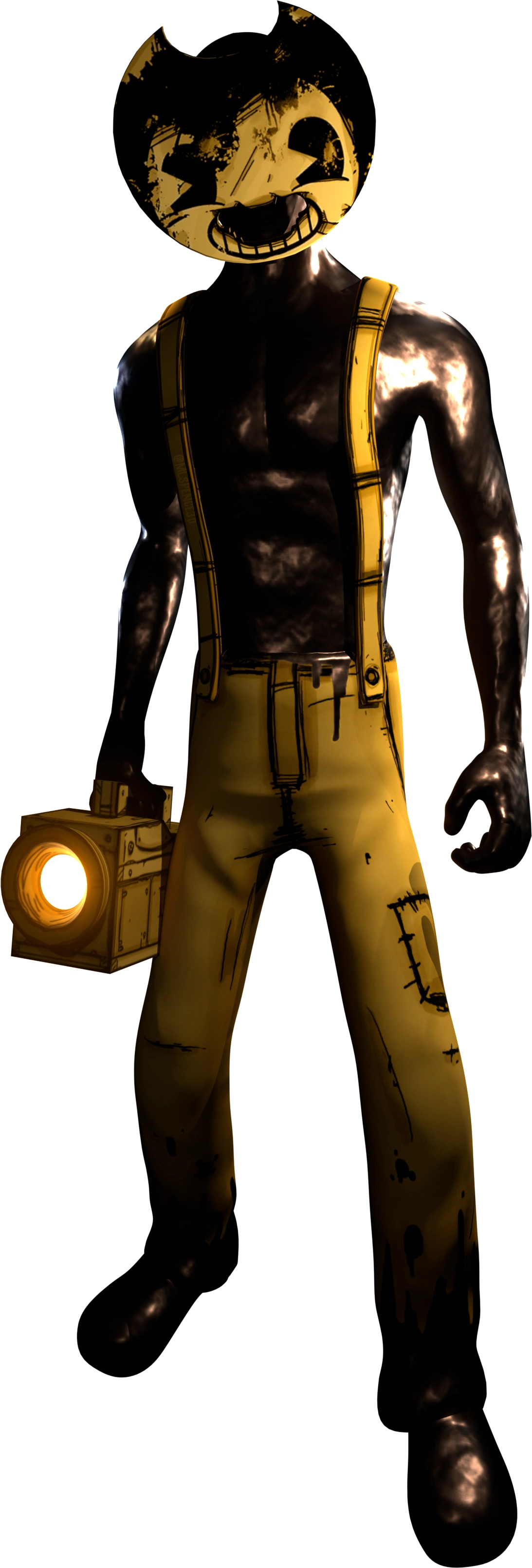 Он выглядит как чёрная, слегка мускулистая фигура, которая отдалённо напоминает Потерянного. Носит маску Бенди с вырезом для рта. У него отсутствуют видимые волосы. Он также носит брюки с подтяжками, которые отдалённо напоминают комбинезон волка Бориса. Брюки немного потрёпаны. Его ботинки и нижняя часть брюк покрыты чернилами. Под маской скрывается практически безликое лицо. У него отсутствуют почти все черты лица, даже уши. Частично видны только глазницы.