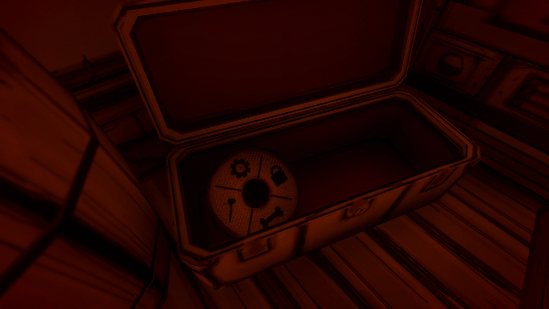 В начале главы в спальне в убежище, есть сундук. Он будет доступен для открытия только во время задания, связанного с собиранием банок супа для Бориса. Внутри сундука кроме банок с супом ещё есть другие предметы, такие как каска, книга с изображением Бенди и другие.